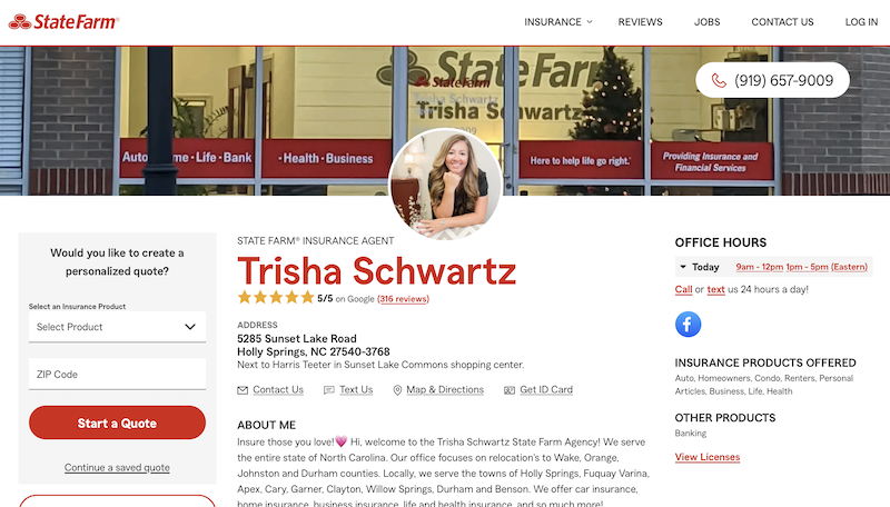 In 2014, Trisha relocated to North Carolina as a Business Specialist, where she had the pleasure of working with agents in the Durham and Fayetteville territories. In September 2019, Trisha fulfilled her dream by opening her own State Farm Agency in Holly Springs, NC. Her office is conveniently located at the corner of Holly Springs Road and Sunset Lake Road in the Harris Teeter shopping center.